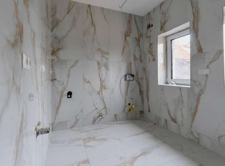 Hier befinden sich zwei großzügige Schlafzimmer sowie ein Tageslichtbad mit bodenebener Dusche.