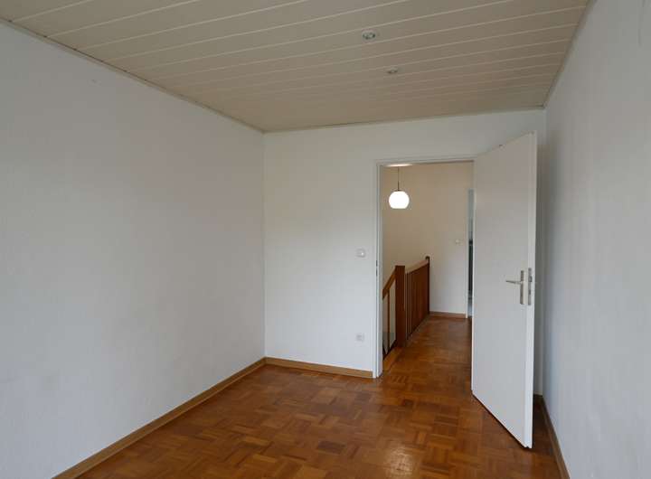 Im Obergeschoss erwarten Sie ein ruhiges Schlafzimmer mit Balkon sowie zwei weitere Zimmer, die sich flexibel als Kinder-, Gäste- oder Arbeitszimmer nutzen lassen. Das zeitlose Eichenparkett in allen Räumen dieser Etage sorgt für eine warme und behagliche Wohnatmosphäre. Ergänzt wird das Angebot durch ein helles Tageslichtbad und den voll unterkellerten Bereich mit viel Stauraum.