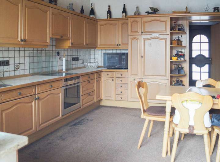 + Solide ausgestattetes Haus mit einer Einbauküche, Jalousien sowie Laminatböden