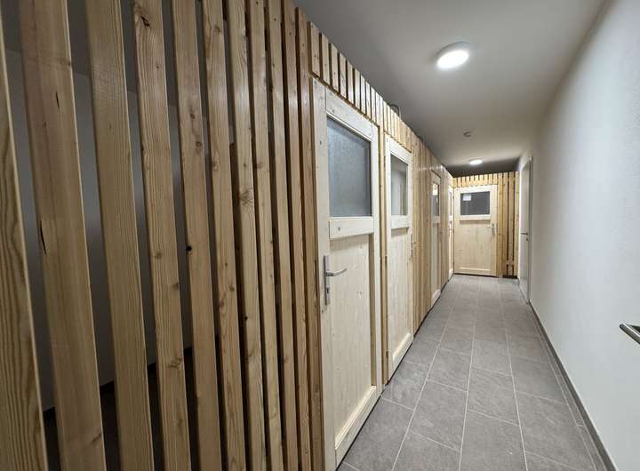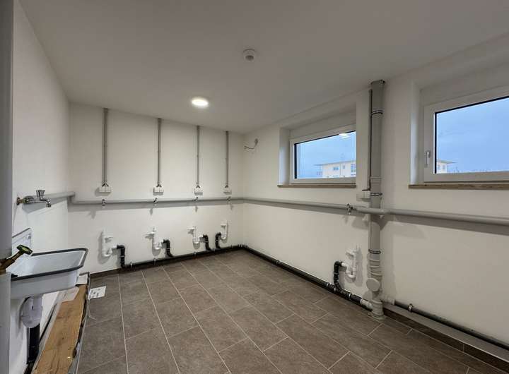 Zu den weiteren Annehmlichkeiten zählen eine moderne Videosprechanlage und ein gemeinschaftlicher Waschraum. Der Zugang zur eigenen Terrasse lädt dazu ein, die frische Luft und sonnige Tage in privatem Rahmen zu genießen.