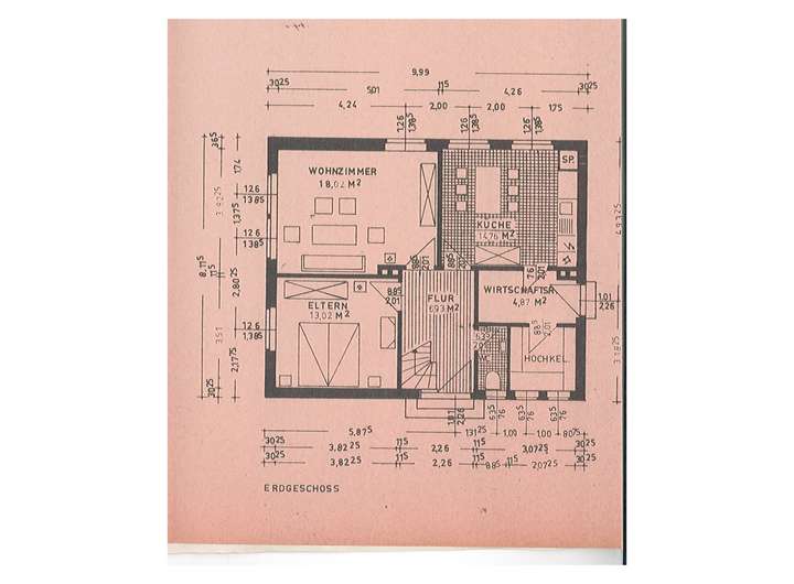 Das im Jahr 1964 erbaute Haus bietet eine Gesamtwohnfläche von ca. 160 m² auf zwei Ebenen sowie eine zusätzliche Nutzfläche von rund 40 m². Der Bruttorauminhalt beträgt etwa 550 m³.
