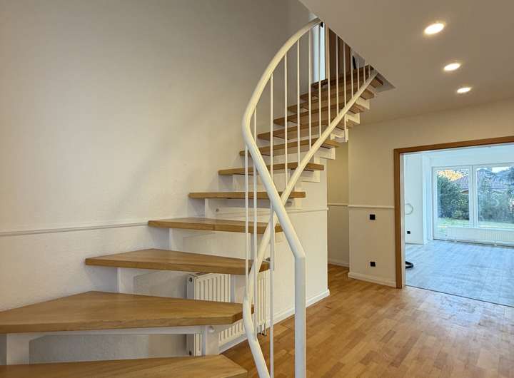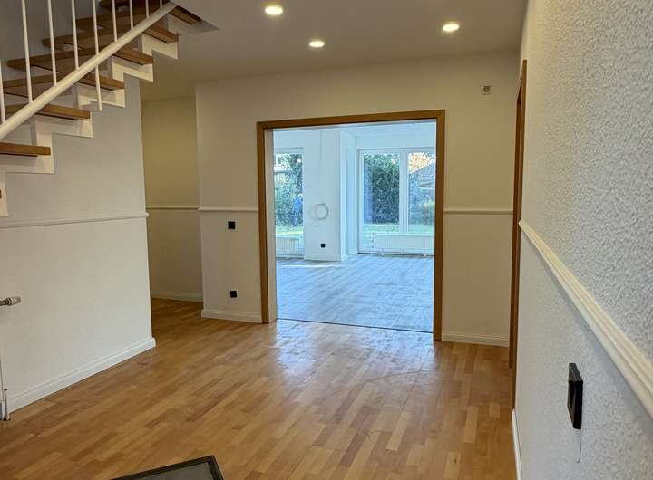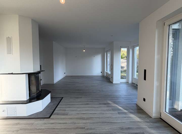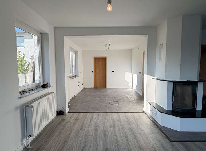 Dieses Einfamilienhaus präsentiert sich nach einer umfassenden Sanierung im Jahr 2024 in einem neuwertigen Zustand – bezugsfertig und bereit, neuen Bewohnern ein gemütliches Zuhause zu bieten. Auf rund 150 m² Wohnfläche erwartet Sie ein Raumkonzept mit insgesamt fünf Zimmern, das besonders Familien viel Platz zum Leben, Spielen und Wohlfühlen bietet. Das Erdgeschoss überzeugt mit hellen Räumen und einem einladenden Wohnbereich, der dank der großen Fensterfronten viel Tageslicht hereinlässt und zugleich durch den Kamin eine warme, behagliche Atmosphäre schafft.