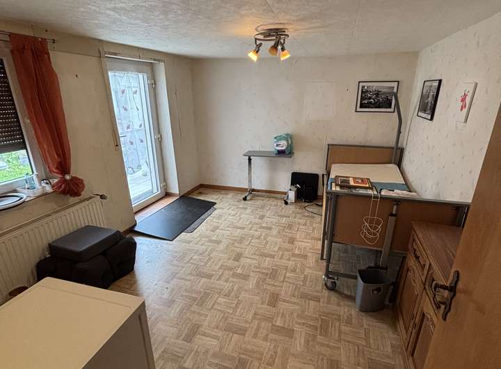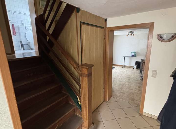 Zum Verkauf steht dieses freistehende Einfamilienhaus aus dem Ursprungsbaujahr 1947 in Koisdorf. Erweitert und komplett saniert im Jahre 1973. Auf drei Etagen (Erdgeschoss, Obergeschoss und ausgebautes Dachgeschoss) befinden sich insgesamt 9 Zimmer zzgl. Küche, Badezimmer, Gäste-WC und Abstellraum. Das Objekt ist teilunterkellert und wird als Gewölbekeller genutzt. Im Erdgeschoss im rückwärtigen Teil befindet sich eine überdachte Terrasse. Daran angrenzend befindet sich auch ein fachgerecht ausgebauter Geräteschuppen, der als Gartenhaus genutzt werden kann.