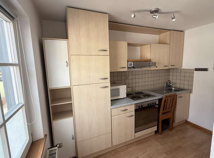 Hier im Obergeschoss beträgt die Fläche dieser Wohnung ca. 46,55 m². Aktuell ist die Wohnung nicht vermietet und steht somit leer.