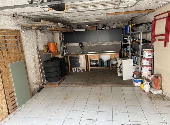 Im Erdgeschoss befinden sich neben den beiden Eingängen zu den Wohnungen folgende Nutzräume: eine geräumige Garage, der Heizungsraum und das Pelletlager. Letztgenannte sind vom Garten her zu erreichen, die Zufahrt zur Garage erfolgt von der Grafenstraße. Eine kleine Abstellfläche im Keller (Teilunterkellerung) rundet das Platzangebot an Nutzfläche ab.