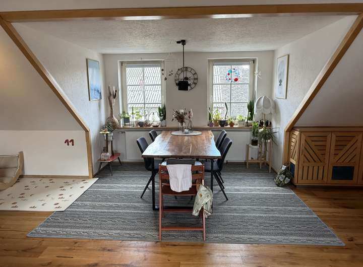 - Die Fußböden wurden mit Holzdielen, Parkett, PVC und Fliesen belegt. Die Wohnräume im Dachgeschoss wurden im Jahr 2023 letztmals renoviert. Es wurden teilweise neue Boden- und Wandbeläge verlegt. Auch in 2 Räumen im Erdgeschoss wurden in den letzten Jahren vergleichbare Renovierungen durchgeführt.