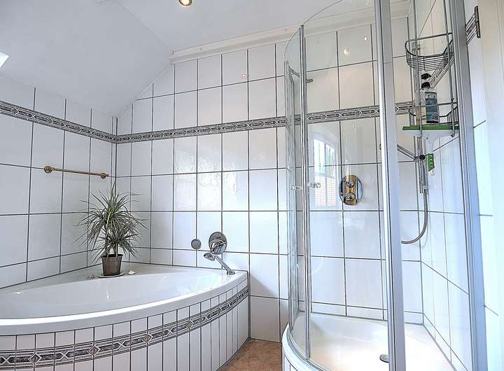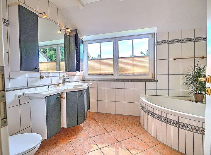 – Badezimmer mit Badewanne, separter Dusche und Fenster