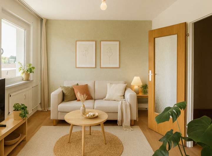 Um Ihnen eine Vorstellung davon zu geben, welches Wohngefühl hier entstehen kann, wurden die gezeigten Bilder mit Hilfe moderner KI-Technologie visualisiert. Sie zeigen inspirierende Einrichtungsideen und Gestaltungsmöglichkeiten, die Ihnen als Anregung für Ihre eigene Planung dienen können.