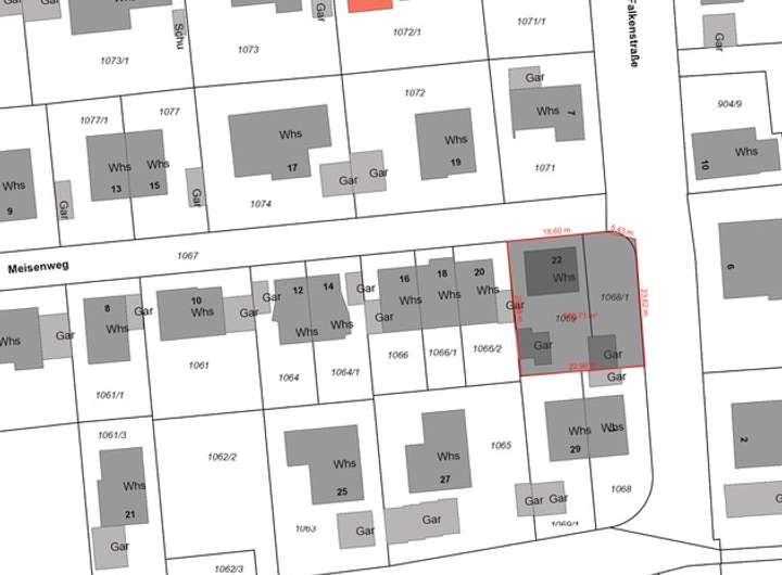 Die beiden Flurstücke liegen Ecke Falkenstrasse und Meisenweg auf dem Tannenberg und sind aktuell mit einem alten Wohnhaus und 4 Garagen überbaut.