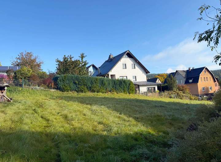 Das leicht Richtung Südosten abfallende Grundstück ist sonnig direkt neben einem Feld und zwei Einfamilienhäusern gelegen. Es bietet eine schöne Aussicht in Richtung Eibenstock und Sosa. Durch die anliegende Straße erreicht man Zschorlau innerhalb von 5 Fahrminuten. Die Autobahnauffahrt Zwickau West ist in rund 25 bis 30 Minuten erreichbar.