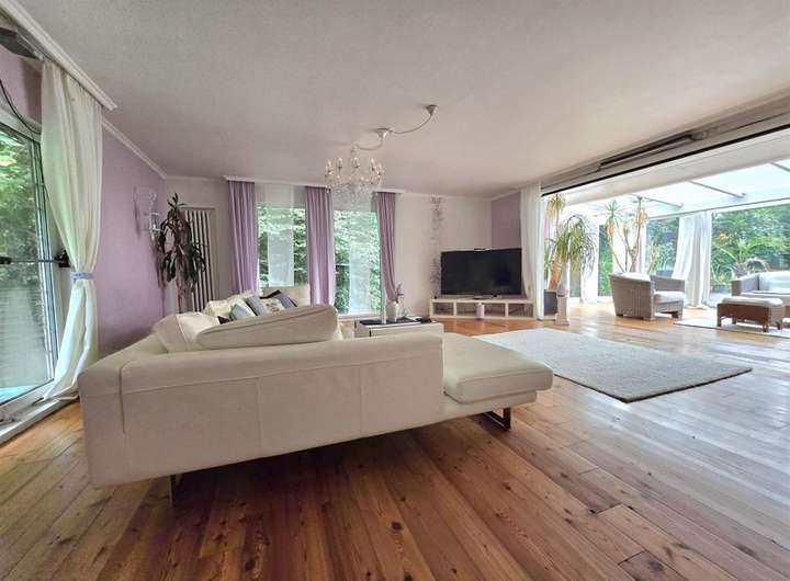 Suchen Sie ein großes, lichdurchflutetes Wohnzimmer mit Blick ins Grüne für Ihre Familie und Gäste?