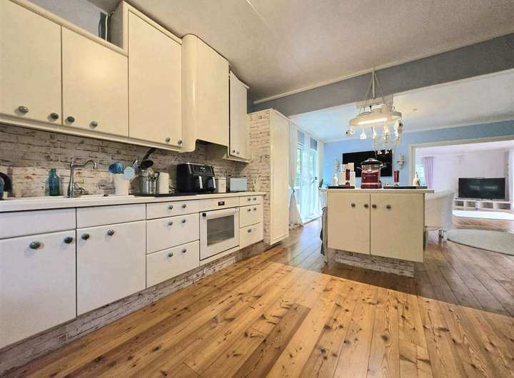 - ca. 10 m² große, offene Küche mit Einbauküche und "Insel", kann bei Bedarf mit Leichtbauwänden geschlossen werden, da eine Wand und eine Innentür zur Diele vorhanden sind