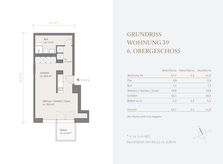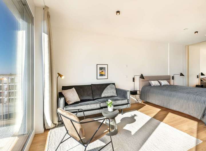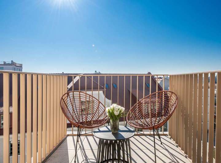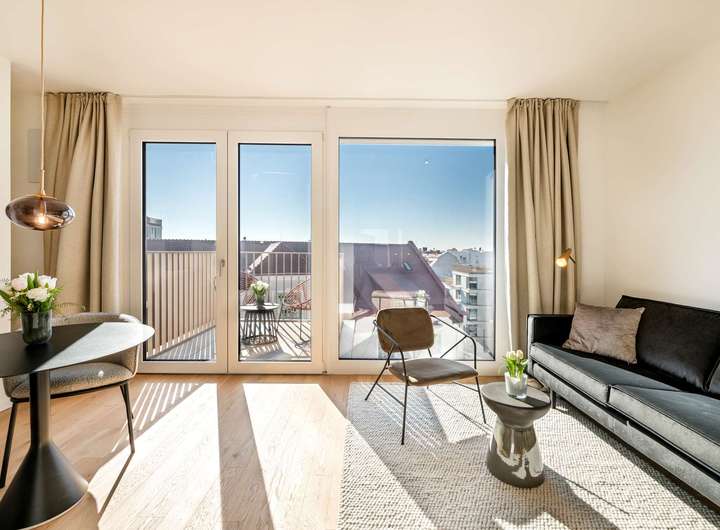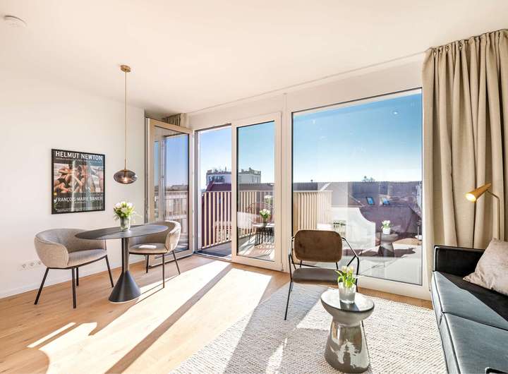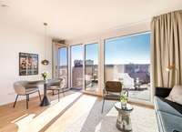 Diese lichtdurchflutete 1-Zimmer-Wohnung befindet sich im 6. Obergeschoss eines Neubaus, der Teil des neuen Premium-Quartiers „Kupa“ ist. Den Bewohnern steht ein wegweisendes Sharing- und Service-Konzept zur Verfügung. Dieses umfasst ein Concierge-Angebot, einen E-Bike- bzw. Lastenrad-Mietservice, Carsharing, einen Co-Working-Space, eine individuell buchbare Küchen-Lounge, ein Paketbox-System und weitere Annehmlichkeiten. Ein Highlight ist die gemeinschaftlich genutzte Dachterrasse mit atemberaubendem Panoramablick bis zu den Alpen, die sich nur ein Stockwerk über den angebotenen Apartments befindet.