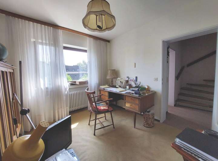 Im Obergeschoss befinden sich drei Schlafzimmer, ein Tageslichtbad mit Badewanne sowie ein nach Westen gerichteter Balkon. Im Dachgeschoss befinden sich zwei weitere Schlafzimmer sowie ein zweites Tageslicht Duschbad.