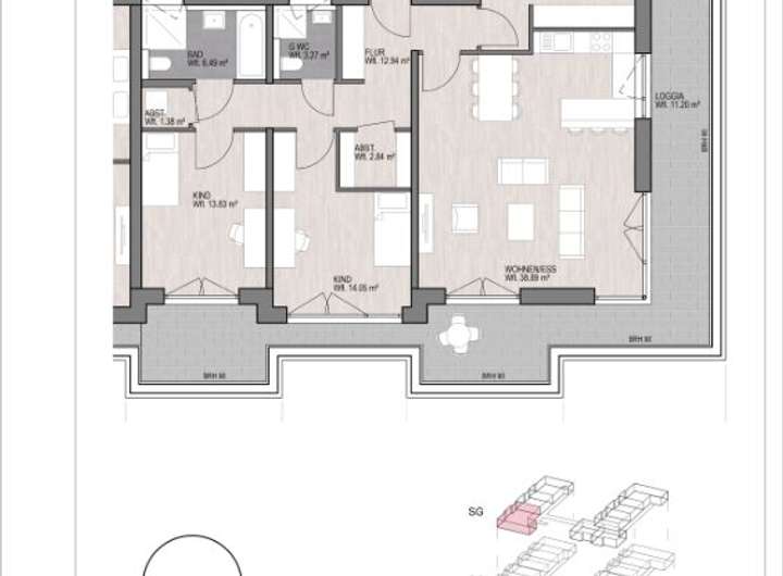 In Zusammenarbeit mit der Projektgruppe MehrgenerationenWohnenMinden e.V. entsteht dieser moderne Neubau und vereint zeitlose Architektur mit neuester Haustechnik und erstklassiger Energieeffizienz (Klasse A+). Die lichtdurchflutete Wohnung im Staffelgeschoss überzeugt durch einen perfekt geplanten Grundriss – ideal für alle, die großzügiges und stilvolles Wohnen schätzen. Herzstück ist der offene Wohn- und Essbereich mit Kochzone und bodentiefen Fenstern. Ein Schlafzimmer, zwei weitere Zimmer, ein Tageslichtbad mit Wanne und Dusche, ein separates Gäste-WC mit zusätzlicher Dusche sowie ein praktischer Abstellraum runden das Raumangebot ab. Hochwertiger Design-Vinylboden und eine komfortable Fußbodenheizung über Wärmepumpe schaffen Behaglichkeit zu jeder Jahreszeit. Ein separater Kellerraum gehört ebefalls zu der Wohnung. Ein PKW-Stellplatz kann bei Bedarf für monatlich 25,00 € angemietet werden.