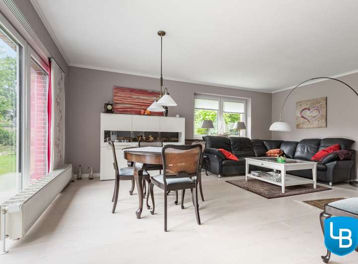 + Großes Wohn- und Esszimmer mit Zugang zur Terrasse und dem Garten