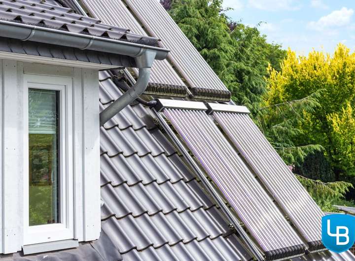 + 2012: Energieeffizient auf KfW-70-Standard saniert inkl. Photovoltaik (28 Module 6,72 KwP), Solarthermie (4 Röhrenkollektoren VRK 12 Premium black, Vakuum Hochleistungs-Röhrenkollektoren für Heizung und Warmwasser), zwei zentralen Lüftungsanlagen mit Wärmerückgewinnung: 2 Zehnder Comfoair 350 L Luxe
