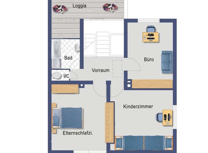 In der Zwischenetage befindet sich eine helle und freundliche Loggia, die zum gemütlichen Verweilen einlädt.