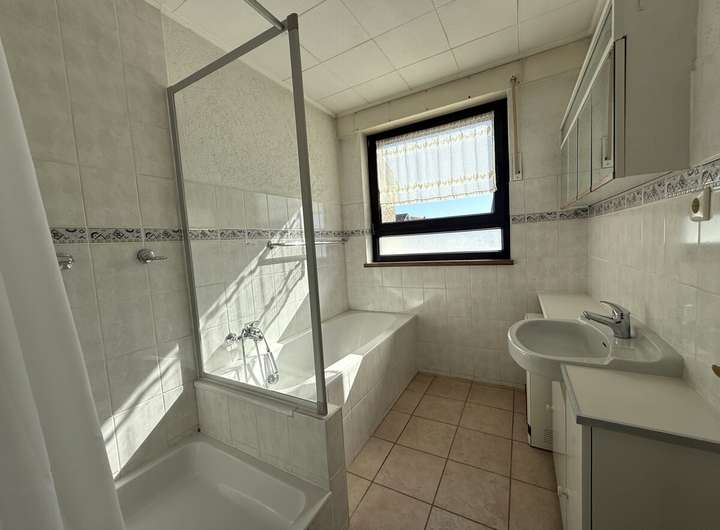 Ebenso auf dieser Etage befindet sich das Tageslichtbadezimmer, welches mit einer Badewanne, Dusche und einem Waschtisch ausgestattet ist. Ein weiteres, separates WC ist vorhanden.