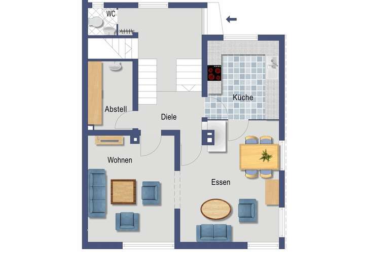 Sie betreten das Haus über die helle und große Diele. Ein Tageslicht-Gäste-WC befindet sich direkt auf dieser Ebene.