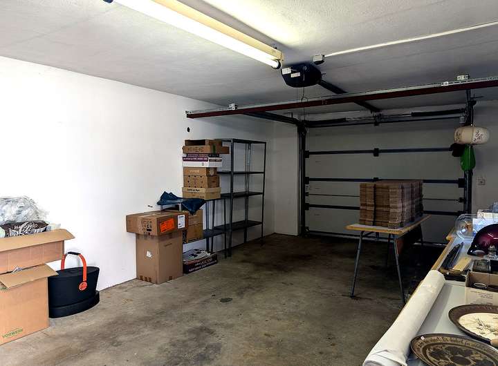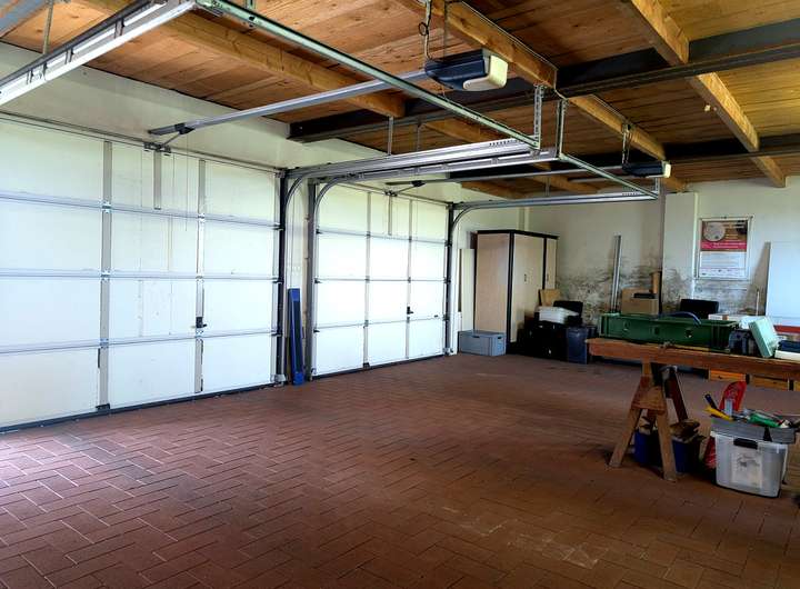 - Doppelgarage mit elektrischem Tor und gefliestem Bad (Dusche/WC)