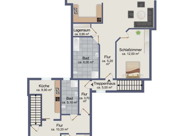 Bei den im Exposé dargestellten Grundrissen handelt es sich ausdrücklich um Grundrissskizzen, die lediglich dem Verständnis der Raumaufteilung dienen sollen. Für angegebene Maße o.a. übernimmt der Makler keine Haftung. Diese sind vom Kaufinteressenten bei Bedarf selbst aufzunehmen.