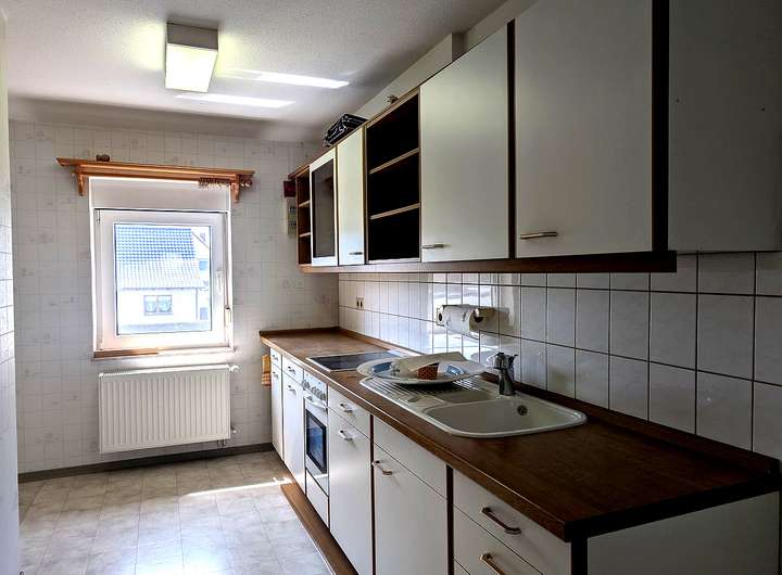 - Flur, offener Wohn-/Essbereich mit Einbauküche