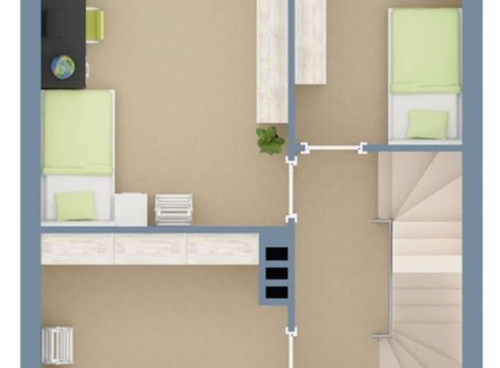 Obergeschoss: Flur, 3 Schlafräume und Bad