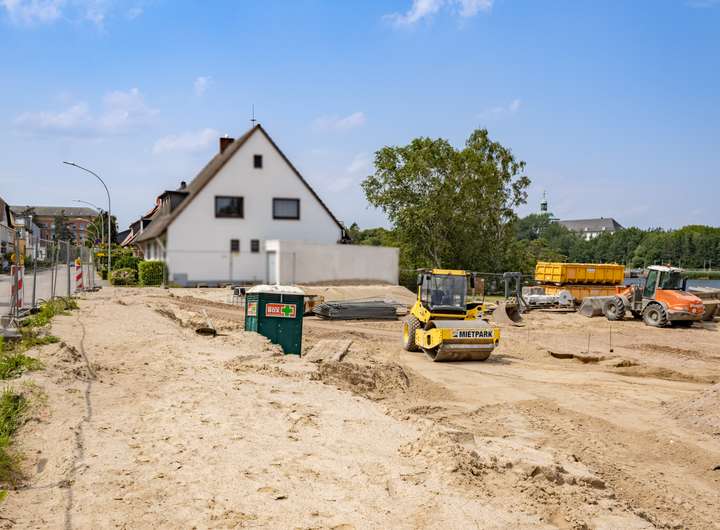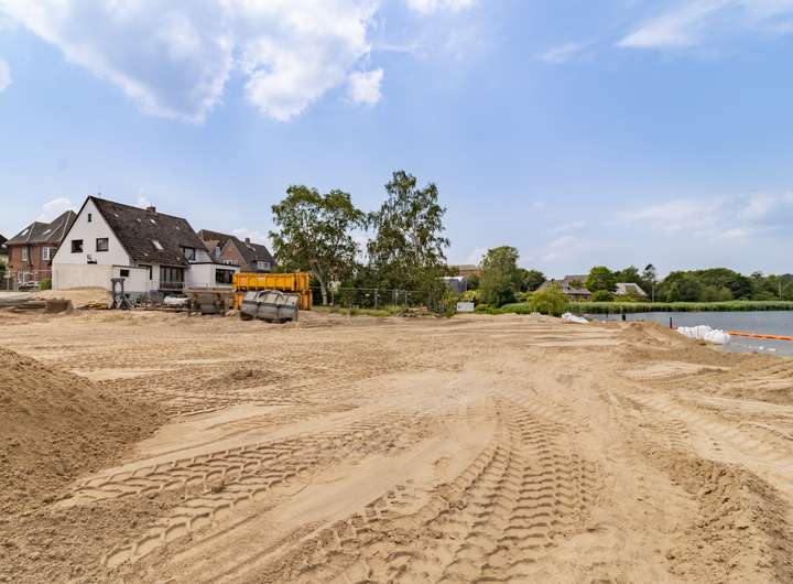 Da sich ehemals auf dem Gelände eine Teerpappenfabrik befand, wird derzeit der gesamte Boden bis zu 10 Meter Tiefe ausgetauscht um Teerölrückstände zu entsorgen. Seit 1974 war das Grundstück mit 1 Einfamilienhaus bebaut. Die Hallen stammten aus dem Jahr 1884. Die unterirdischen Fundamentreste der ehemaligen Gebäude wurden beseitigt und das kontaminierte Erdreich wird abgetragen und durch unbelastetes Bodenmaterial (Verfüllsand) aufgefüllt. Nach der erfolgten Bodensanierung wird das Grundstück mit ca. 50 cm Mutterboden und Grasansaat für die Bebauung freigegeben. Die ehemalige Topografie des Geländes wird wiederhergestellt. Zuständig für die Sanierung ist der Kreis Schleswig-Flensburg als untere Bodenschutzbehörde. Der Abschluss der Sanierungsarbeiten ist für den Sommer 2025 geplant. Weitere Details entnehmen Sie bitte auf folgender Seite: https://www.schleswig-flensburg.de/Altlast+Wikingeck+Schleswig .