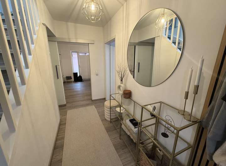 Das zum Verkauf stehende Einfamilienhaus wurde im Jahr 2021 in allen wesentlichen Gewerken umfangreich kernsaniert. Moderne Elektrik, neue Sanitäranlagen, Dämmung von Dach, Wänden und Böden sowie ein hochwertiger Innenausbau verleihen dem Haus heute den Komfort eines Neubaus.