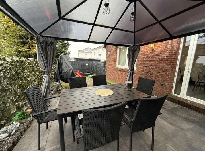 - Terrasse mit Pavillon, gepflegter Garten + extra Gartengrundstück