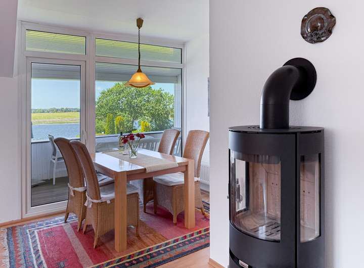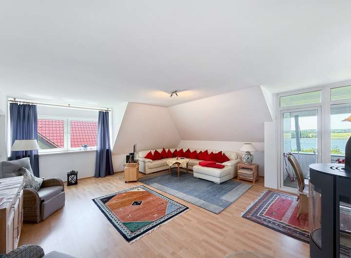 •sehr großer Wohn- Essbereich mit Kaminofen und Schleiblick und Zugang zur Loggia