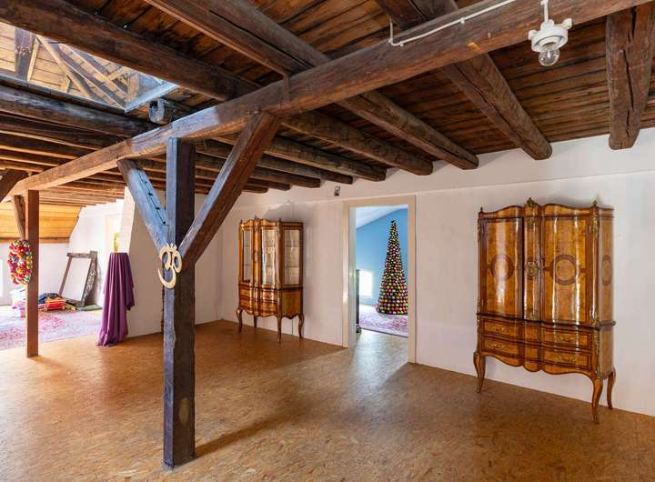 Die Wohnfläche dieser einmaligen Liegenschaft beträgt ca. 440m² auf 2 Etagen (EG und OG), hinzu kommt das nur teilweise ausgebaute Dachgeschoss, das weitere 220m² Platz bietet, so dass hier insgesamt eine Wohnfläche von 660 m² entstehen kann.