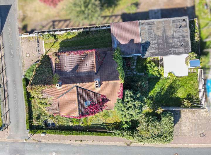 Im Außenbereich verfügt die Immobilie über eine Garage mit angrenzender Werkstatt sowie einen überdachten Freisitz mit Außenkamin – ideal für gemütliche Stunden im Freien.