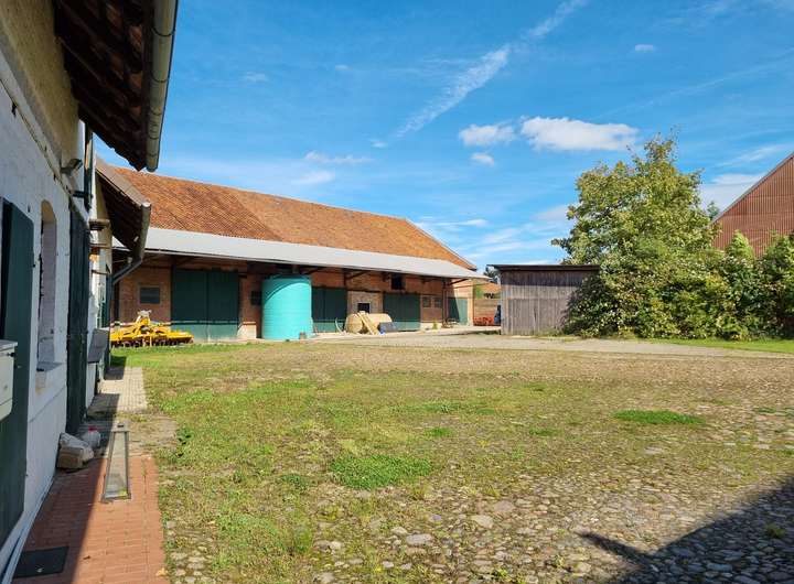 Auf dem Grundstück von 4.782 m² befindet sich eine große Scheune (ca. 43m x 15m), ein ehemaligen Stall (ca. 24m x 7,45m), eine Remise von ca. 30m² und ein offener Fahrzeugunterstand (ca. 20m x 6m).