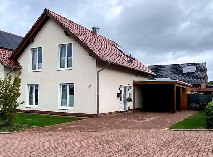 Doppelhaushälfte mit Terrasse, Carport und Gerätehaus in Molbergen