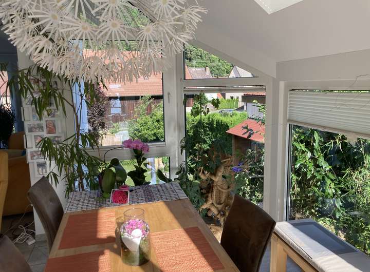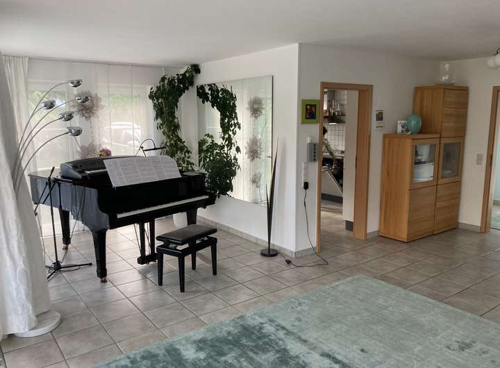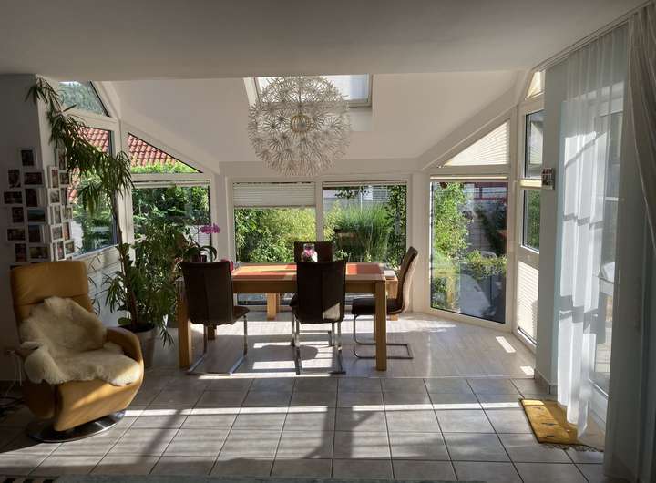 Wintergarten. Toller Wintergarten, der es auch im Winter sehr gemütlich macht. Ein wunderbarer Jamaha Flügel steht in dem sehr großzügigen Wohnbereich und im Garten ist sowohl eine Sauna als auch ein Whirlpool mit herrlichen 39 Grad vorhanden. Also alles da um sich richtig wohl zu fühlen. Im UG ist noch ein Bereich abgetrennt, den wir noch zu unserer Verfügung benötigen.
