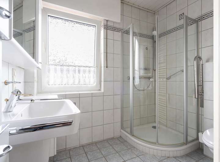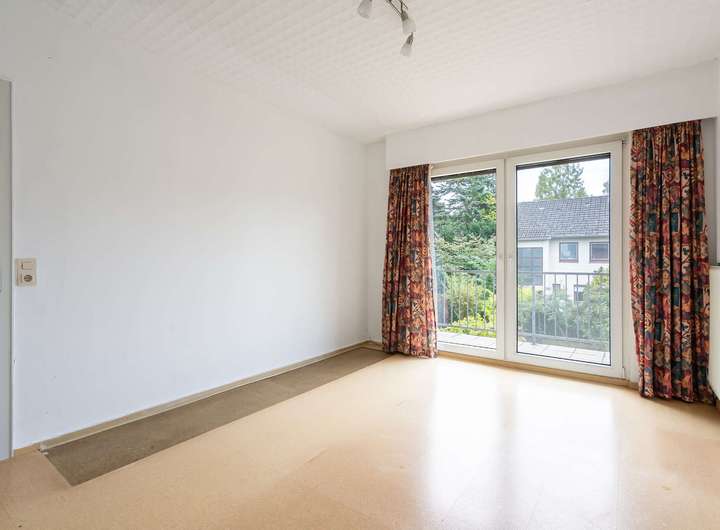 Das Obergeschoss beherbergt 2,5 Schlafräume, darunter ein Elternschlafzimmer mit Zugang zu einem Balkon, der einen schönen Blick in den Garten ermöglicht. Ein funktionales Tageslichtbad mit Dusche steht hier ebenfalls zur Verfügung. Die Zimmer sind flexibel nutzbar – ob als Kinderzimmer, Homeoffice oder Ankleidezimmer.
