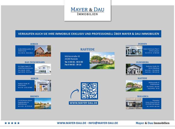 "Leben in Küstennähe". Jaderberg befindet sich in einer idealen Lage zu den Städten Oldenburg und Wilhelmshaven, diese sind in ca. 20 Minuten mit dem Auto zu erreichen.