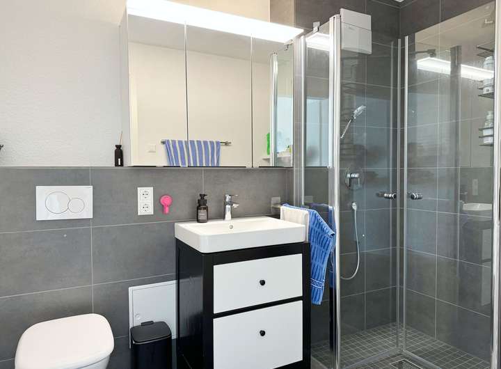 - Design-Bad mit bodenebener Dusche und Einbauschrank