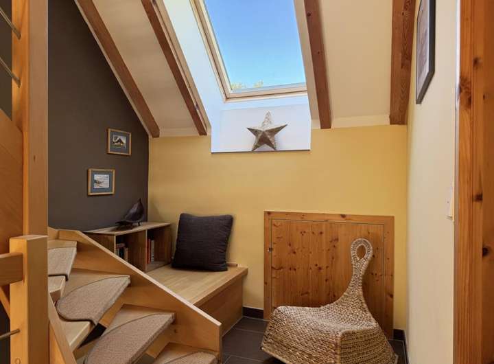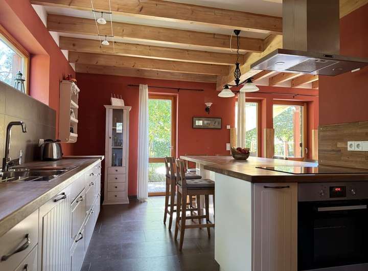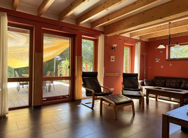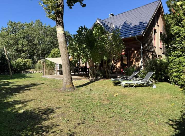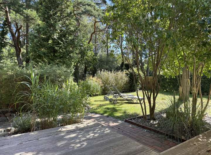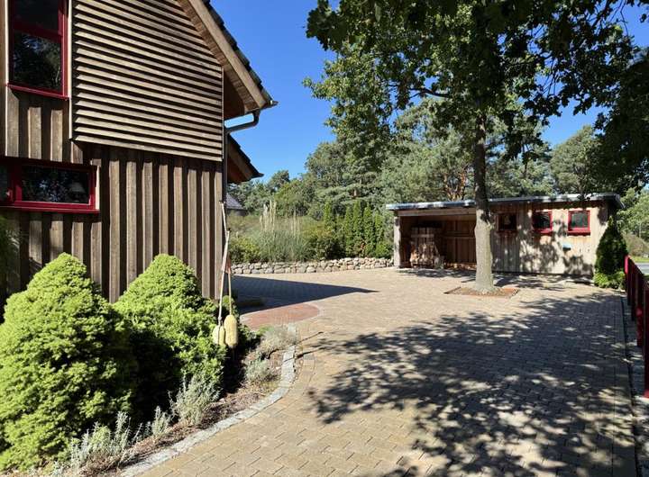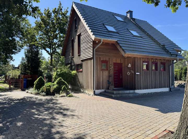In Wieck auf dem Darß steht dieses Einfamilienhaus, das 2009 in Holzständerbauweise errichtet wurde. Außen prägt eine natürliche Holzschalung das Bild, während der große Garten mit altem Baumbestand viel Privatsphäre schafft. Die Lage bringt eine gute Erreichbarkeit mit, gleichzeitig schützt der eingewachsene Garten mit alten Bäumen und dichter Bepflanzung vor Einblicken und schafft ruhige Plätze im Grünen.