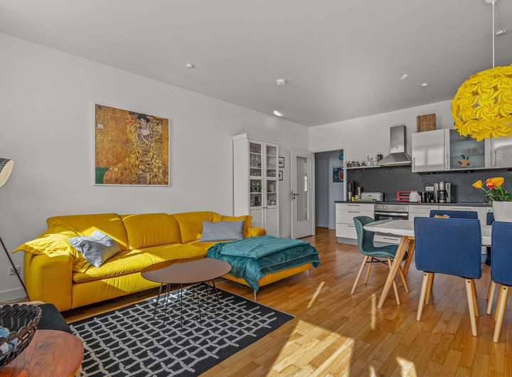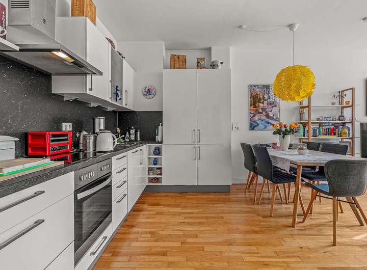 Auf rund 69,89 m² Wohnfläche erwarten Sie drei gut geschnittene Zimmer, die durch ihre helle und einladende Atmosphäre überzeugen. Die Wohnung befindet sich in einem gepflegten Zustand und ist mit hochwertigem Eichenparkett in allen Wohnräumen ausgestattet. Große, zweifach verglaste Holzfenster sowie eine großzügige Balkontür lassen viel Tageslicht herein und schaffen eine lichtdurchflutete Wohnatmosphäre mit besonderem Wohlfühlcharakter.