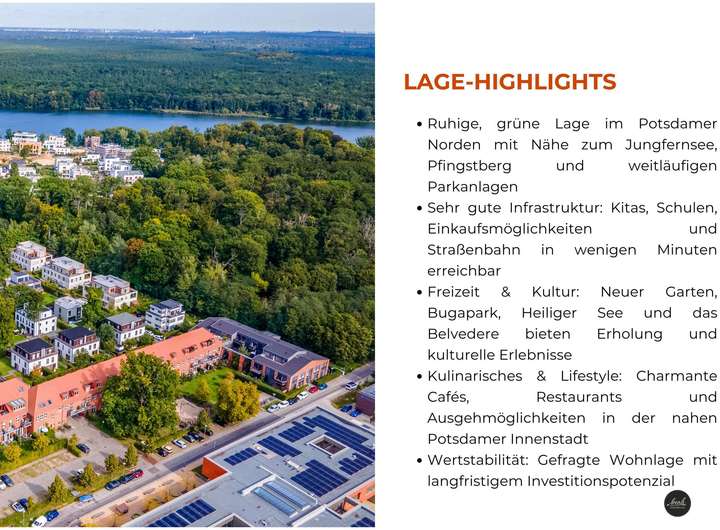Die Kombination aus historischer Bausubstanz, aufwendig sanierten Denkmälern, naturnaher Umgebung und perfekter Infrastruktur macht den Potsdamer Norden zu einer der begehrtesten Wohnlagen der Stadt. Das Wohnen hier vereint Geschichte, Lebensqualität und Investitionssicherheit in einzigartiger Weise.