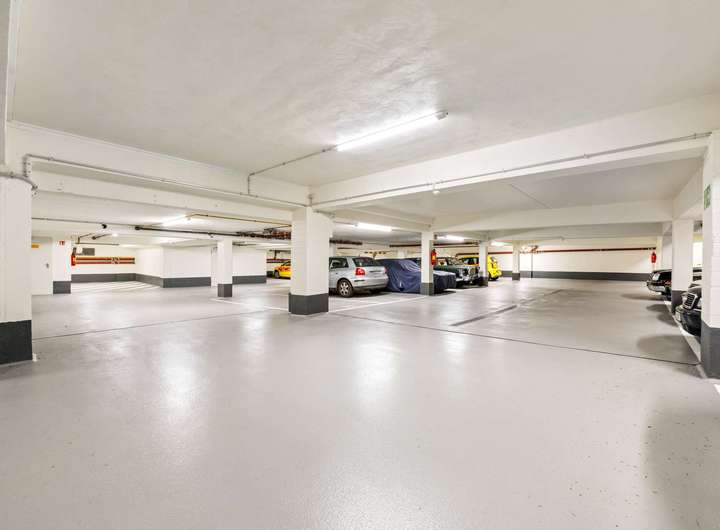 Zum Anwesen gehören eine Tiefgarage mit 36 Stellplätzen sowie sieben Pkw-Außenstellplätze. In den vergangenen Jahren wurden umfassende Modernisierungen vorgenommen – unter anderem an der Tiefgarage (Betonsanierung, neues Rolltor), an den Heizungs- und Elektroanlagen, den Balkonen sowie im Bereich des Brandschutzes. Dadurch befindet sich das Objekt in einem technisch soliden und gepflegten Gesamtzustand.