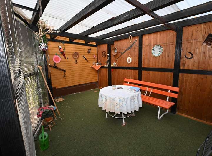 Der weitläufige Garten lädt zum Entspannen, Spielen oder Gärtnern ein. Eine kleine Hütte bietet zusätzlichen Raum, ob für Hobby, Stauraum oder gemütliche Stunden im Grünen.