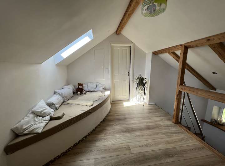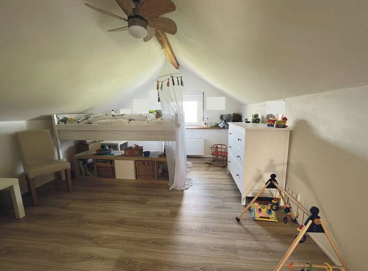 Hier befinden sich ein weiteres Schlafzimmer, ein Büro, sowie der Dachboden für zusätzlichen Stauraum.