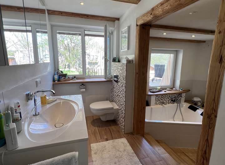 Dieses besondere, in wunderschöner Alleinlage mit Bergsicht gelegene Haus in Massivbauweise (Bj. 1960) wurde im Jahr 2013 sehr aufwendig komplett kernsaniert. Man kann hier wirklich von einem waren Immobilienjuwel sprechen, da das Haus einzigartig, sehr modern und zeitlos ist.