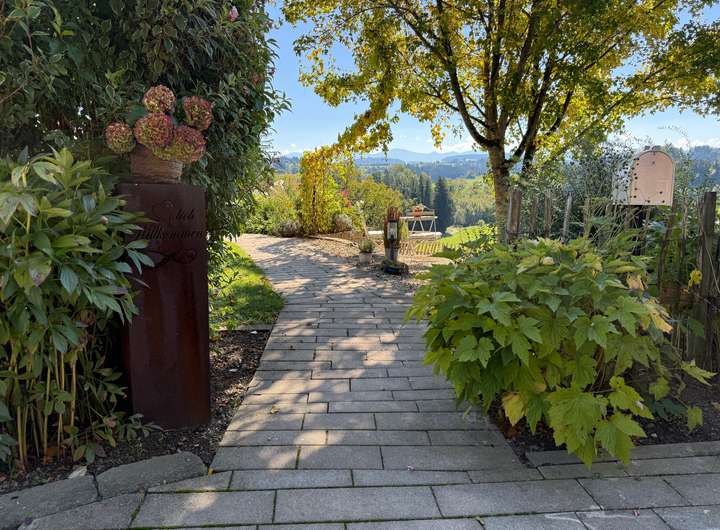 Der wunderschöne, liebevoll angelegte Garten mit Grillstelle lädt zum Verweilen im Freien bei perfekter Aussicht ein.