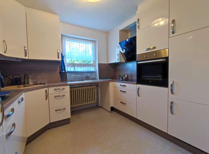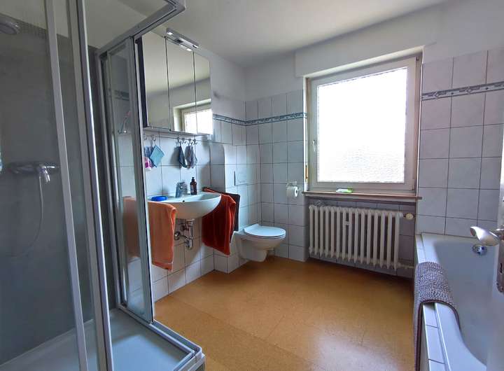 Das Badezimmer mit Dusche wurde vor rund 15 Jahren modernisiert. Die Einbauküche, ebenfalls in sehr gutem Zustand, wurde vor etwa 10 Jahren erneuert.