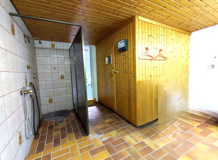 Das Untergeschoss ist voll beheizbar und verfügt über eine großzügige begehbare Dusche sowie eine Familien-Sauna mit direktem Zugang nach draußen – ideal für Wellness und Entspannung im eigenen Zuhause.